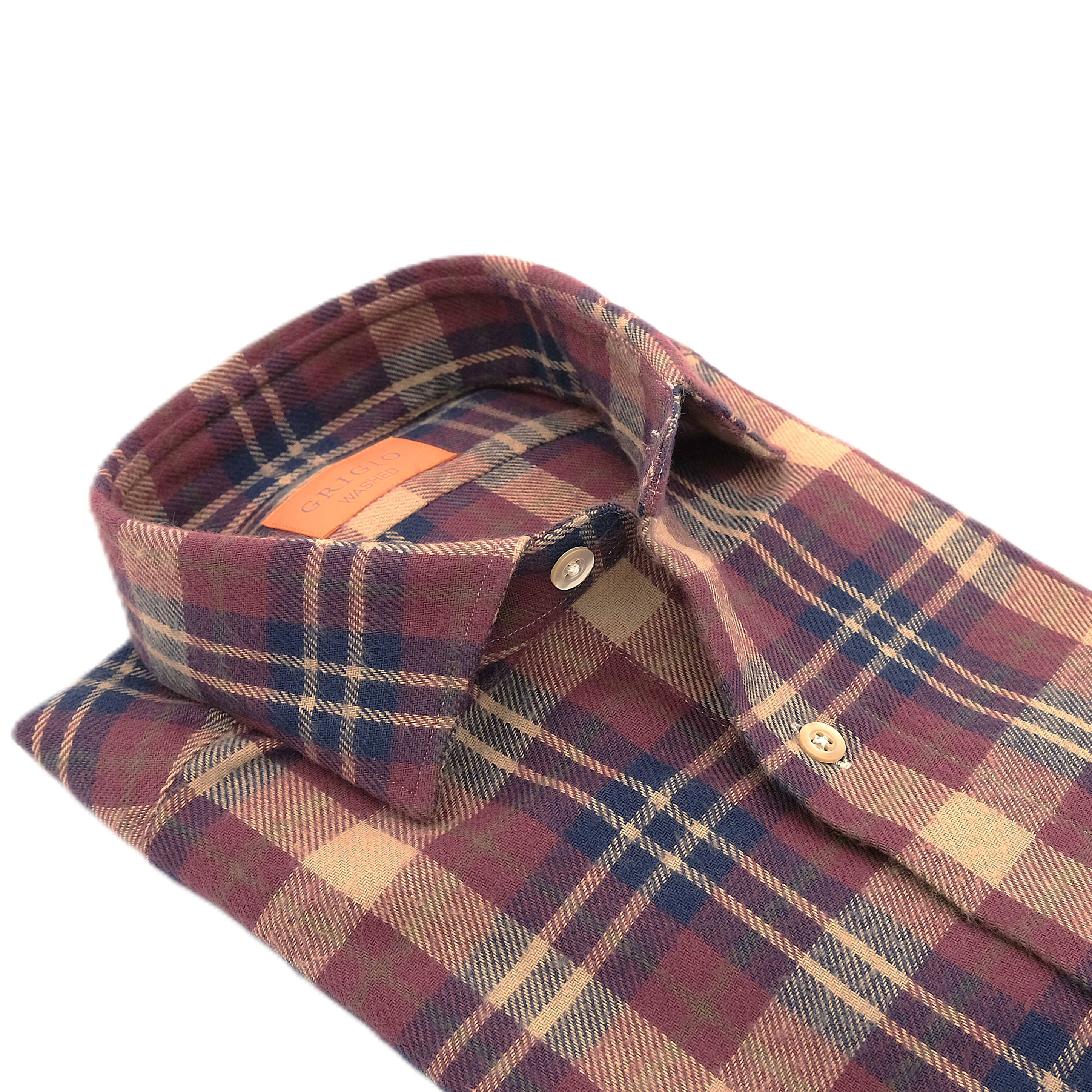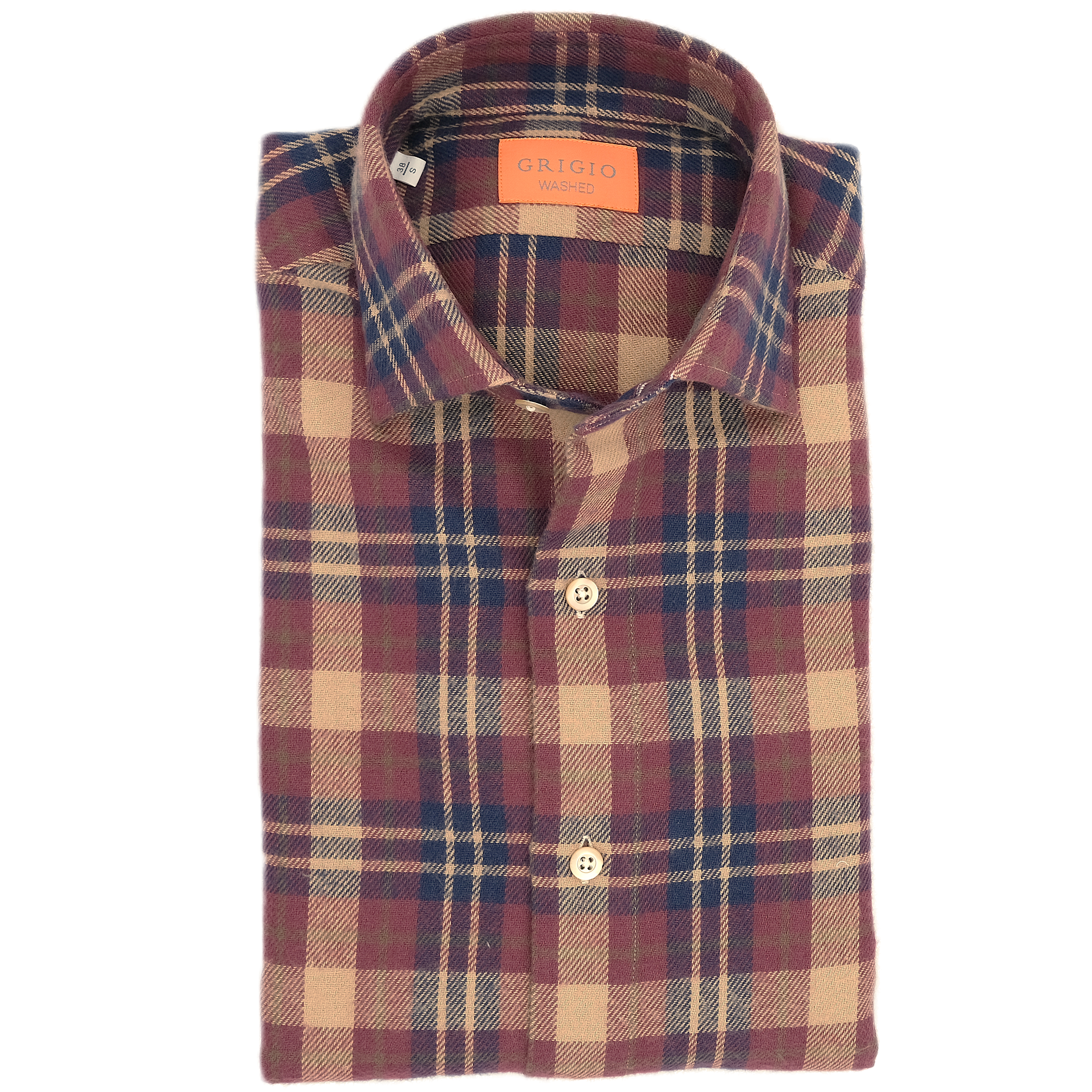 Beige, dark blue and wine bed check patterns "washed" casual shirt GRIGIO