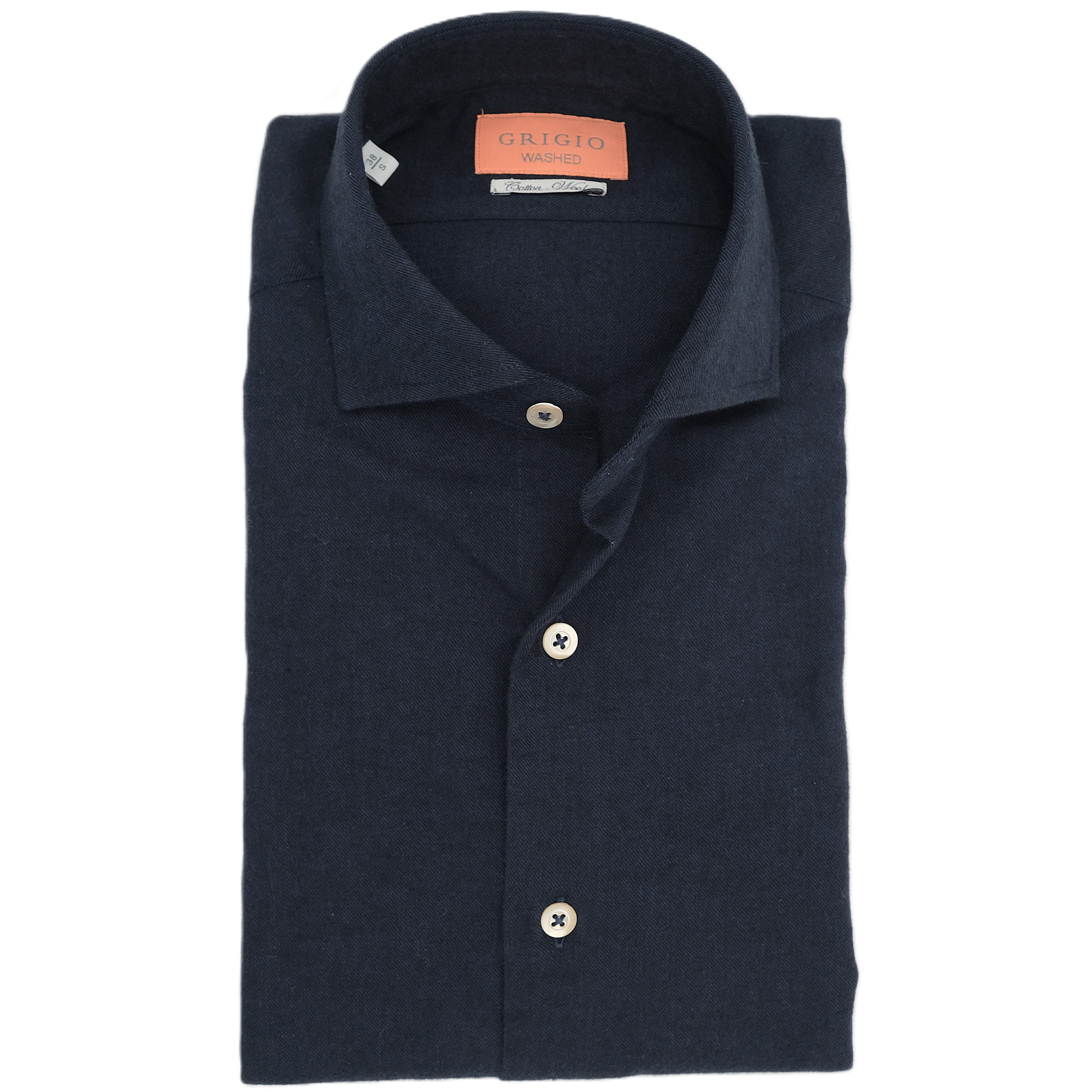Dark blue "washed cotton and wool" casual shirt GRIGIO