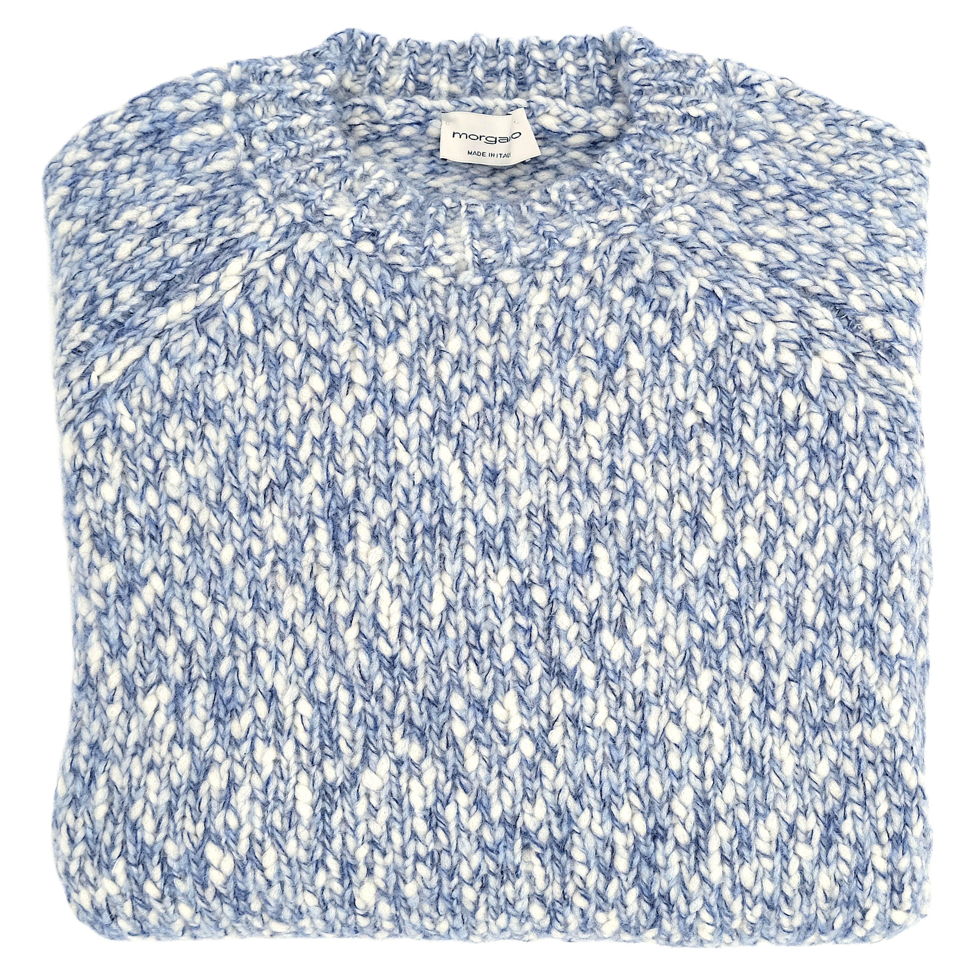 White and blue "mottled" round neck sweater MORGANO