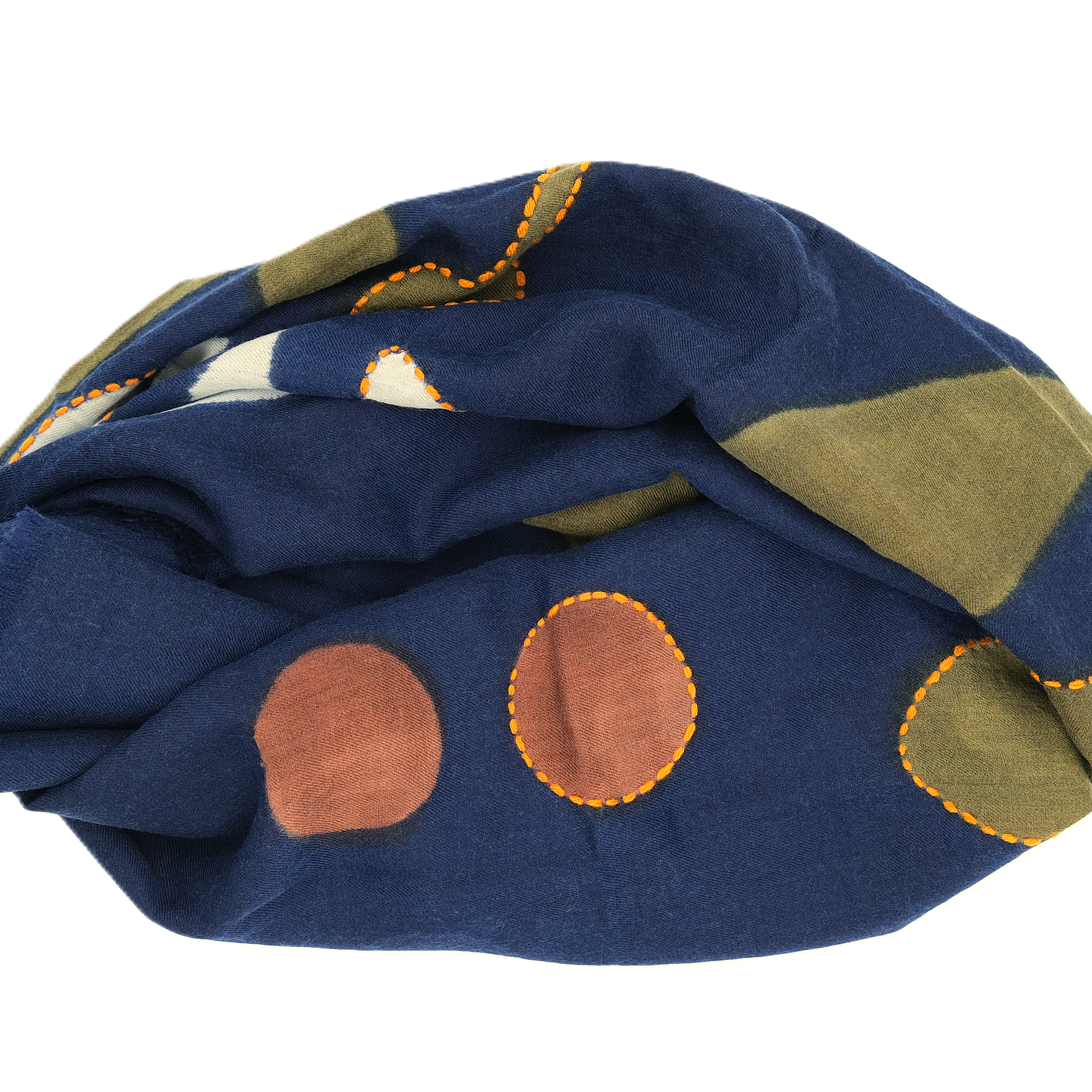 Embroidered "mumbai" scarf with navy blue background colour / ROSI
