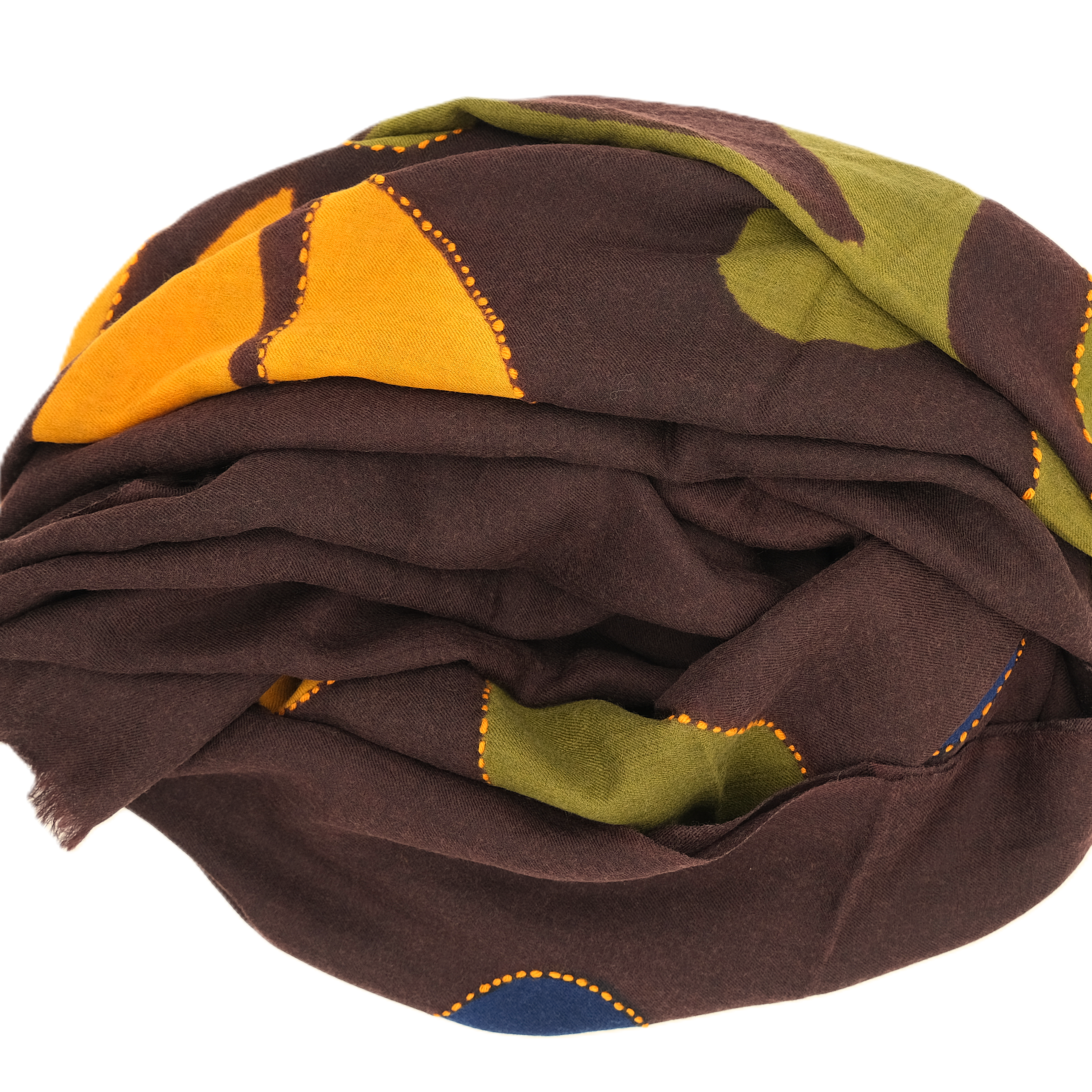 Embroidered "mumbai" scarf with dark brown background colour /ROSI